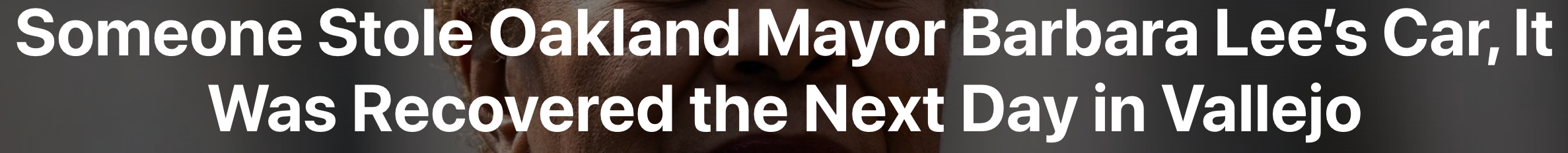 据报道,就在奥克兰市长Barbara Lee刚刚宣扬该市2025年整体犯罪率下降一个月后,现实就给了这位市长一记响亮的耳光。据KRON4及《旧金山纪事报》报道,市长的公务用车——一辆福特Expedition SUV,周一(总统日假期)竟然在奥克兰市政厅的停车场内被盗。