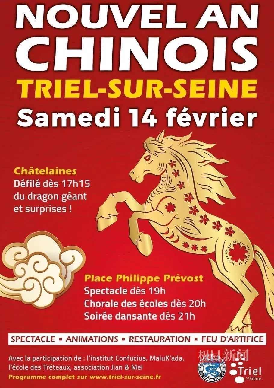 “村子每年都会组织春节活动,通常选在一个周六,还有庙会小吃等活动。”当地华人李女士(化姓)向记者介绍道,村子名叫TrielsurSeine,是塞纳河畔一个人口不足1.1万人的小村庄,村子里有一个武术团,名叫DragonBleu,团里都是法国人,每年都会自发组织庆祝春节的活动,有很多人闻讯围观,乌泱泱的一片。