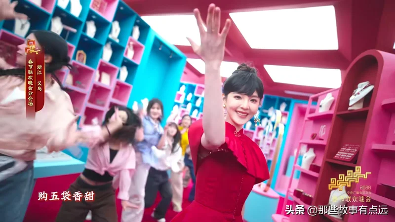 在时长大概8分钟的《世界义乌中国年》里,章若楠出场时间只有几秒钟,但依旧让人印象深刻。