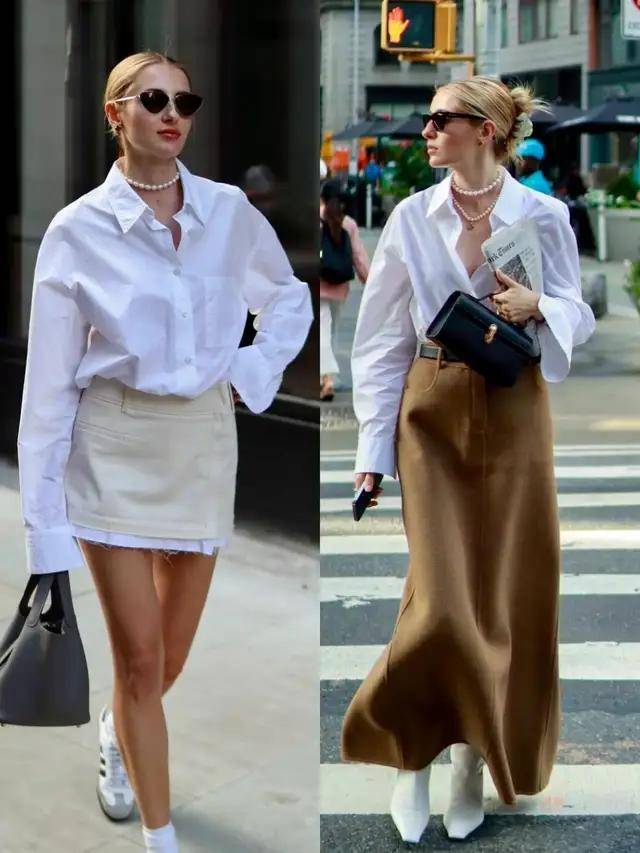 换成裙子搭配衬衫可以让你变得干练又利落。
