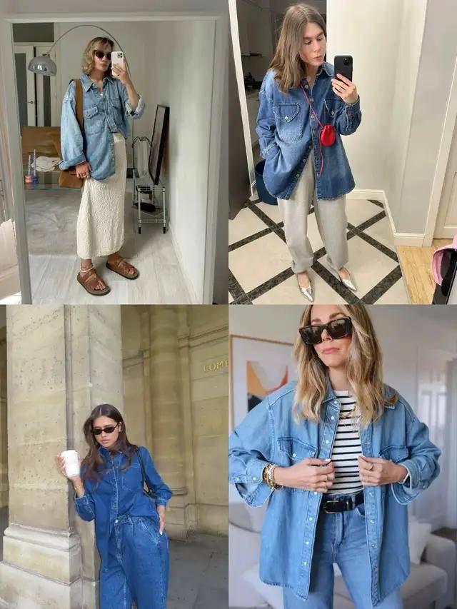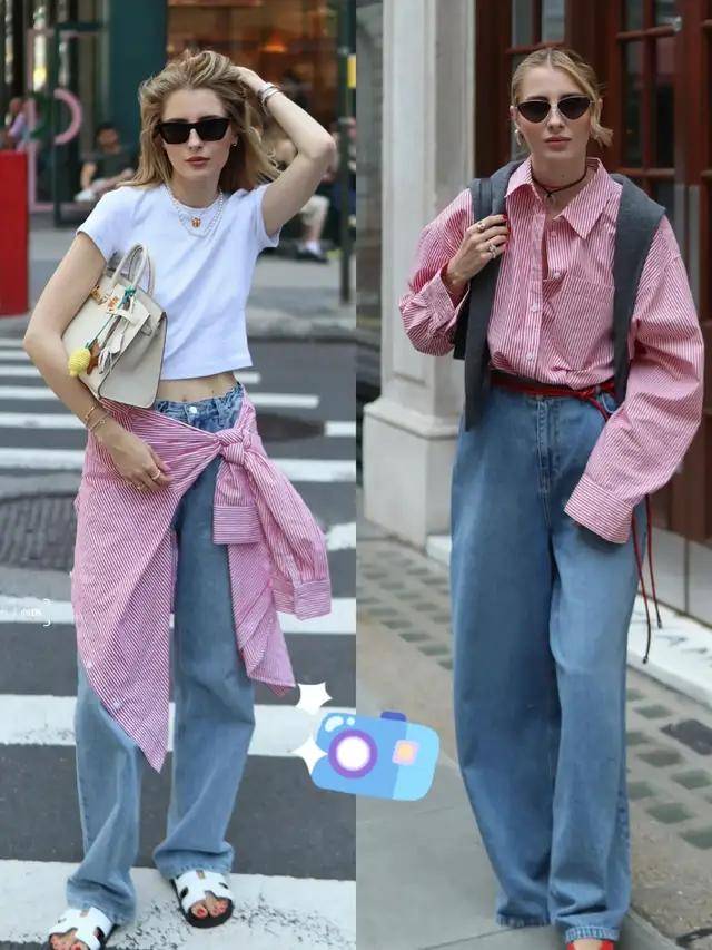 当然,我个人更推荐你用牛仔衬衫搭配牛仔裤,内搭黑白条纹打底衫,这样的衣服组合更容易降低出错率,照着穿也会很美。