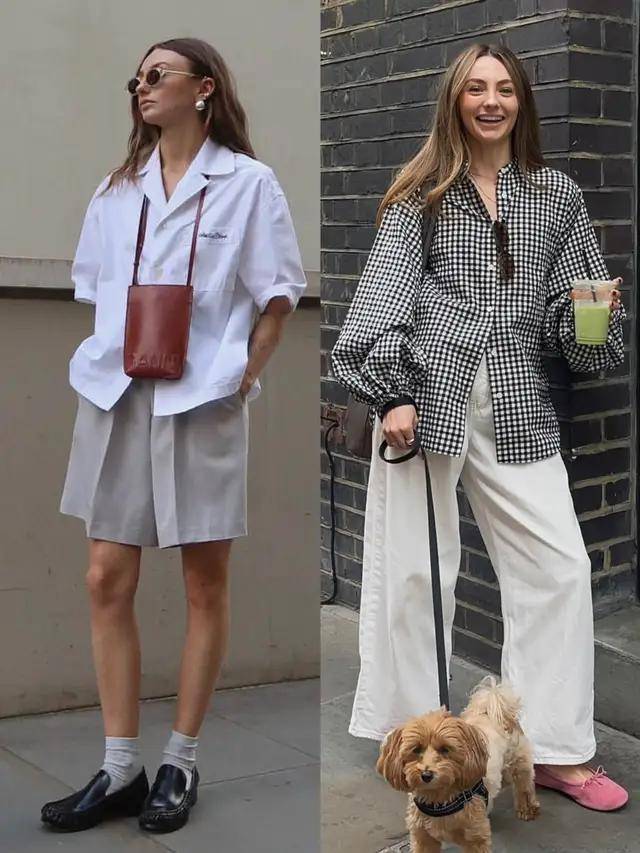 或是选择百慕大短裤来搭配上白色的衬衫,脚踩一双黑色的乐福鞋,这样的打扮方式舒适自在,日常出门穿搭,慵懒又时尚。