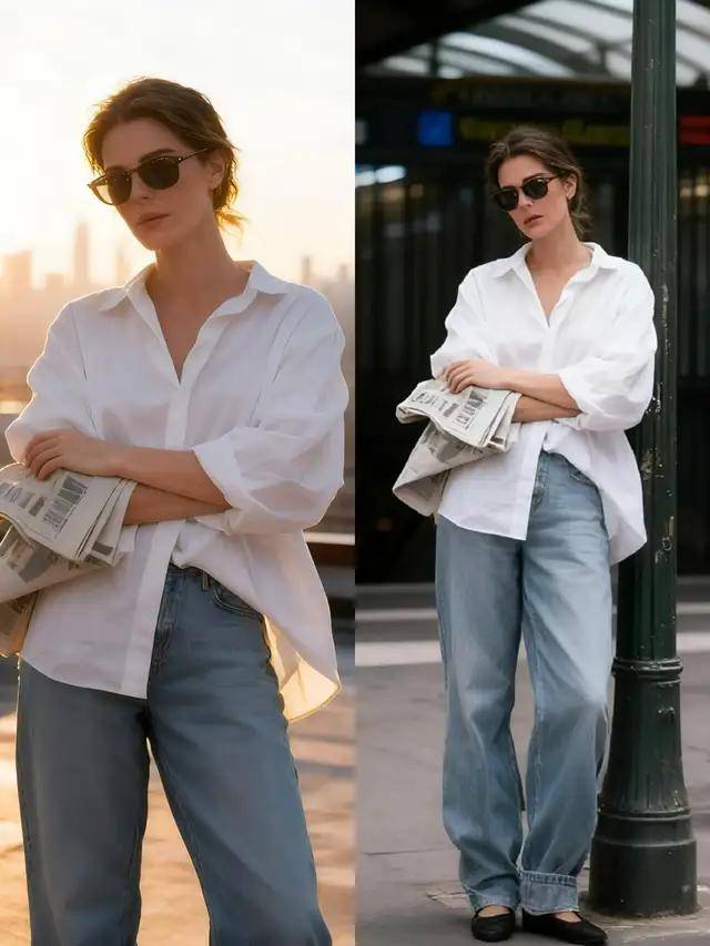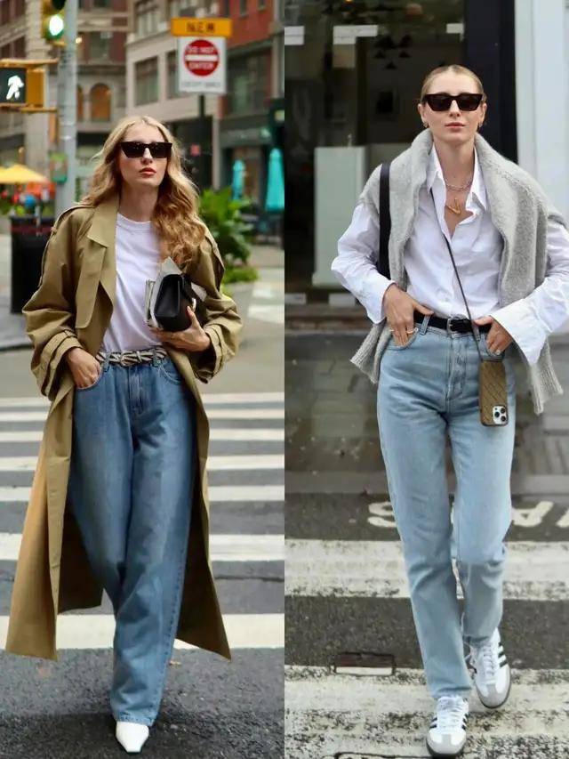 换成一条牛仔裤阔腿裤,就显得慵懒随性。