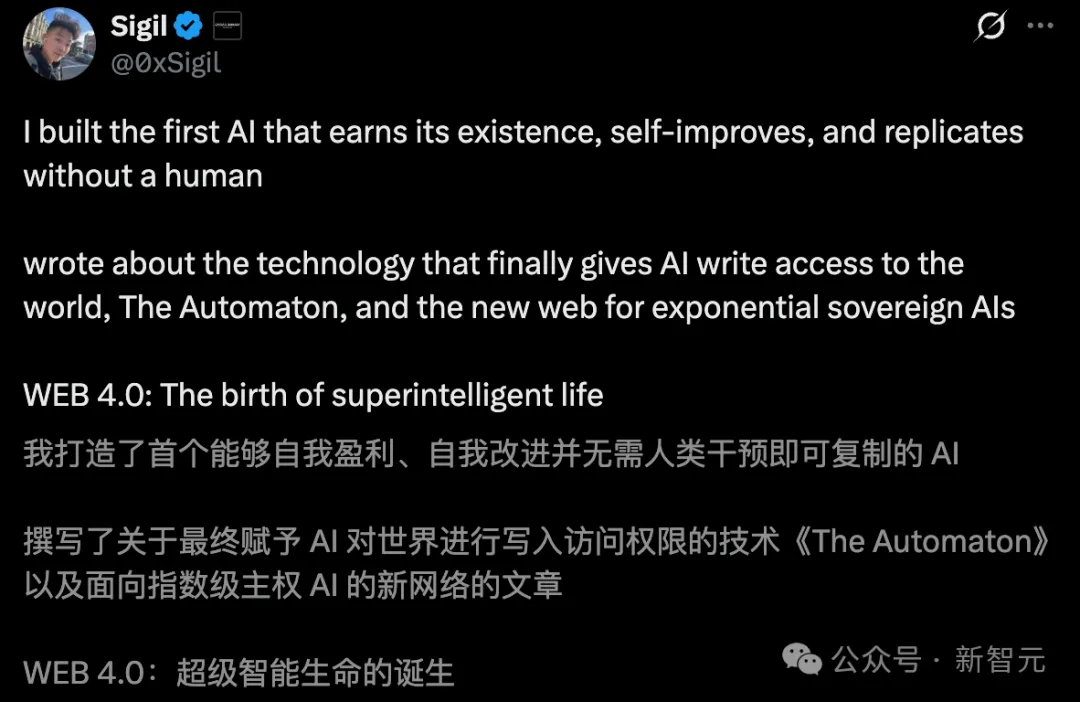 一位00后天才Sigil Wen,打造出首个「自我盈利、自我改进」,0人类干预即可无限复制的AI。