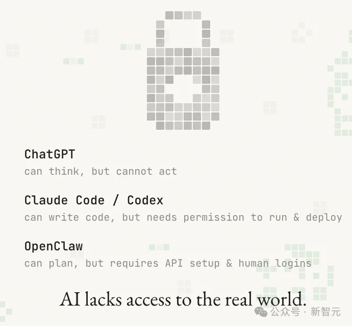 现在,超级AI的瓶颈不再是「智力」,而是「权限」。现有的互联网默认用户必须是「人」,这把AI挡在了现实世界的大门之外。