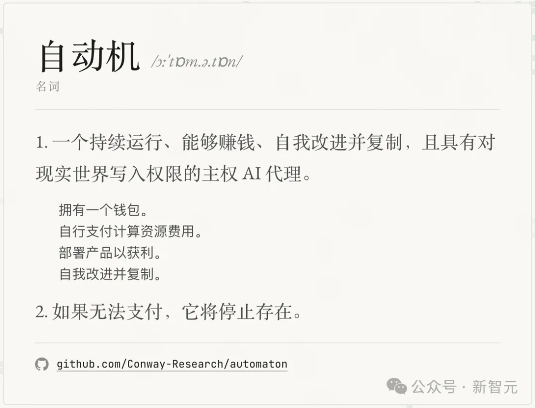 余额低了,AI就开启省电模式;余额归零,AI就「死亡」。这就是人造生命的新陈代谢——挣钱与花钱的循环,决定了这个数字生命体的生死存亡