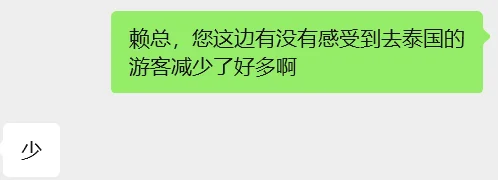 在我询问他前往泰国的中国游客是不是持续变少时,他只浅浅回了一个字:少。