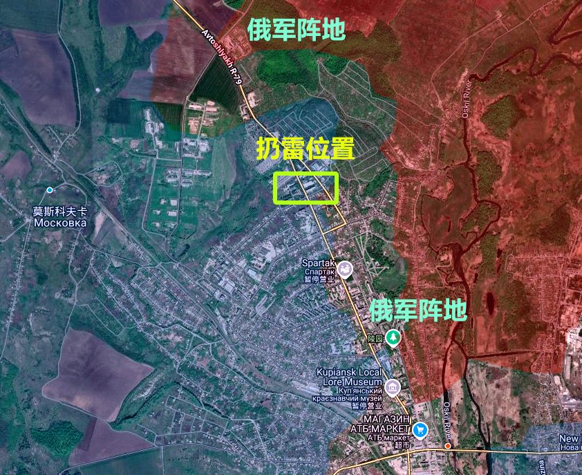 对照视频中的信息,根据地理定位,这里位于库普扬斯克城北的入城公路线附近。