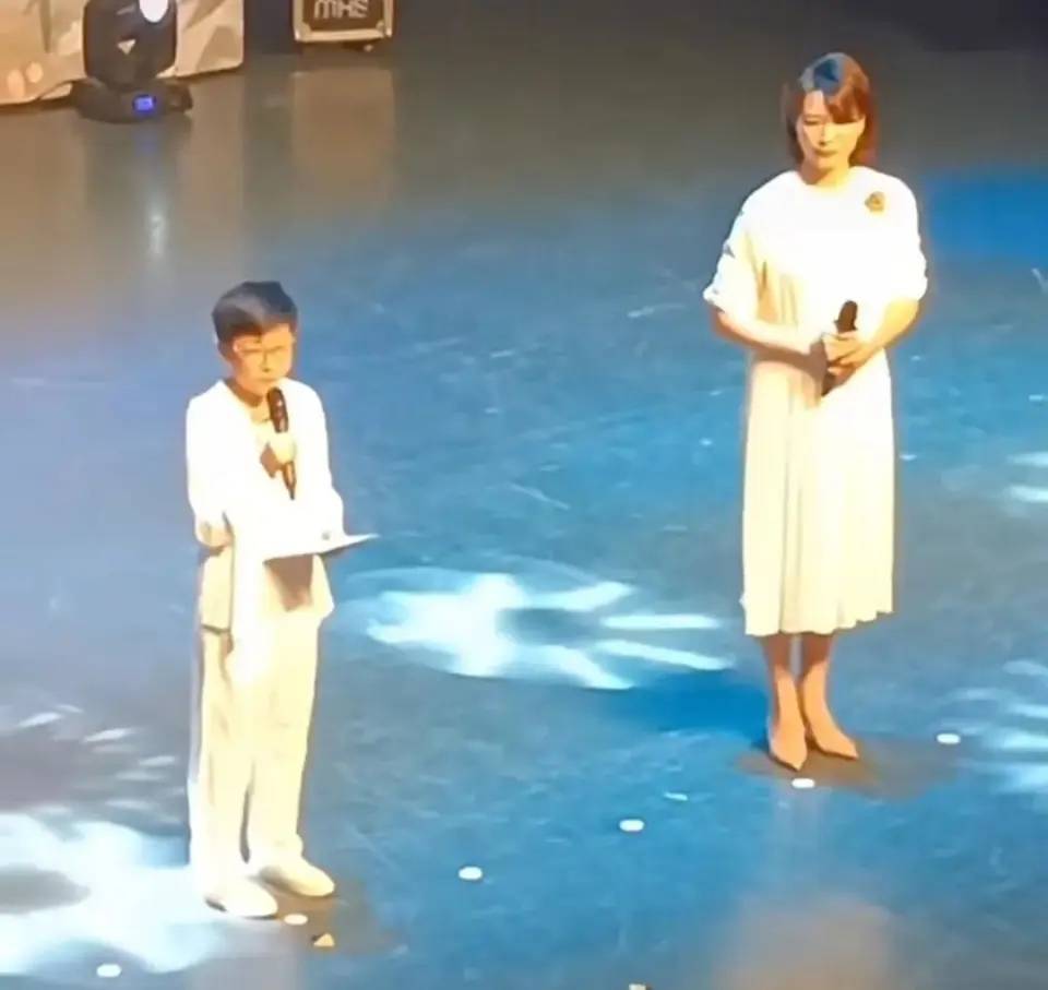 有人说她儿子更像父亲的长相,但在学校活动里母子同台诗朗诵,孩子表达清楚、不怯场,网友一句调侃很到位:“脸随爸,嘴随妈。”