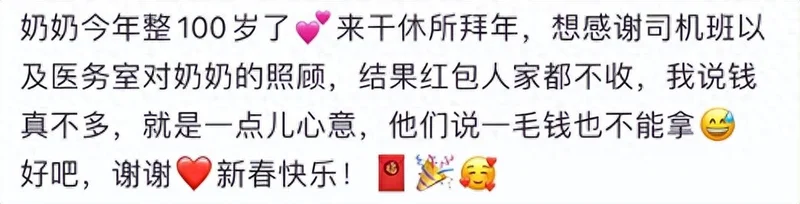 朱珠透露奶奶今年整100岁了,不过从朱珠晒出的合照来看,奶奶的状态并不像是百岁老人,很显年轻。