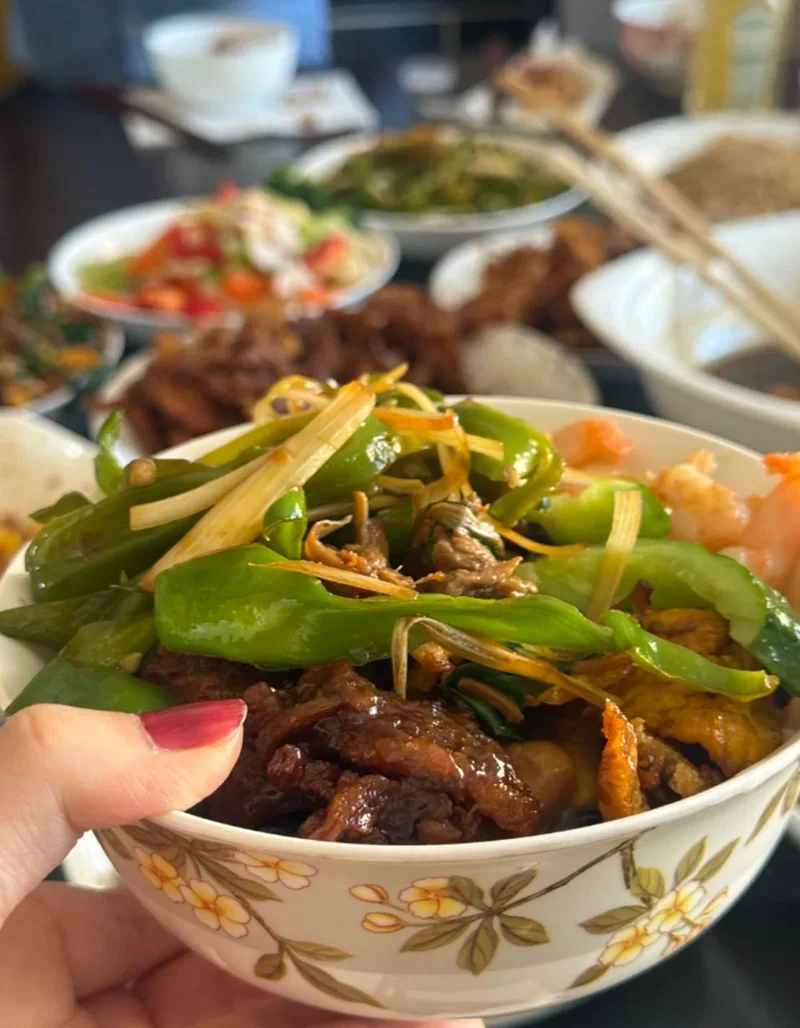 对于难得回家的儿子一家,王昀佳父母准备了丰盛的菜肴招待朱珠这位明星儿媳。从朱珠晒出的照片来看,圆桌上摆满着炒青椒肉丝、莲藕片、炒虾仁、炒鸡块等色香味俱全的菜肴,细数了一下有13道菜。
