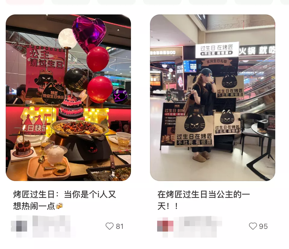 除了各类川渝风味烤鱼,以及折耳根包浆豆腐、花椒雪糕等特色菜,烤匠还将重心放在了服务体验的延伸上。烤匠通过在等位区提供石膏猫涂色游戏,为过生日的顾客唱歌并送上生日礼包,以及为会员送上主题麻将等周边礼品,强化了与消费者的情绪连接。