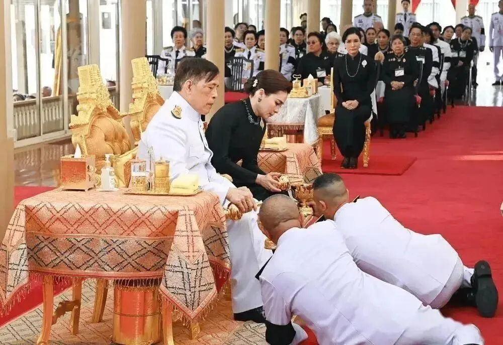 2月7日,泰国国王参加潘萨瓦丽夫人的葬礼,带着王后苏提达和诗妮娜一起参加。