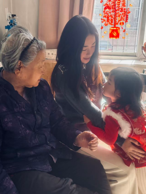 2月19日,大年初三,女星朱珠再次更新社交动态,记录她和老公王昀佳一起带着女儿看望自己奶奶的动态。