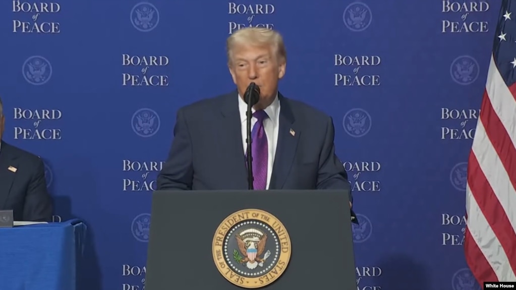 美国总统特朗普在和平委员会首次会议上发表讲话。(2026年2月19日)