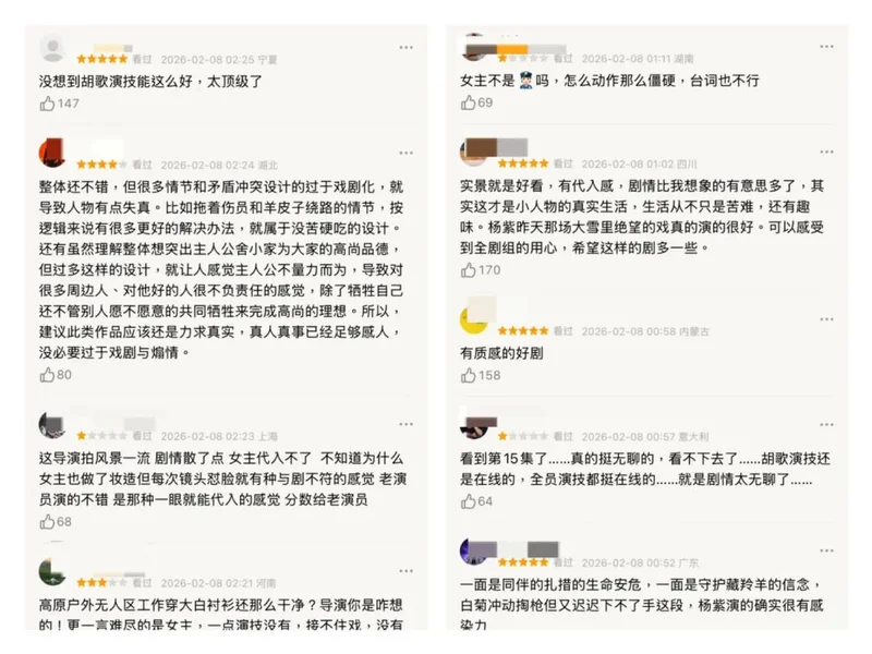 但另一边,五星好评同样刷屏。支持者表示:“你不懂这片土地的重量。”有人夸它“电影质感”“立意深沉”,甚至断言“这是今年最好的剧”。