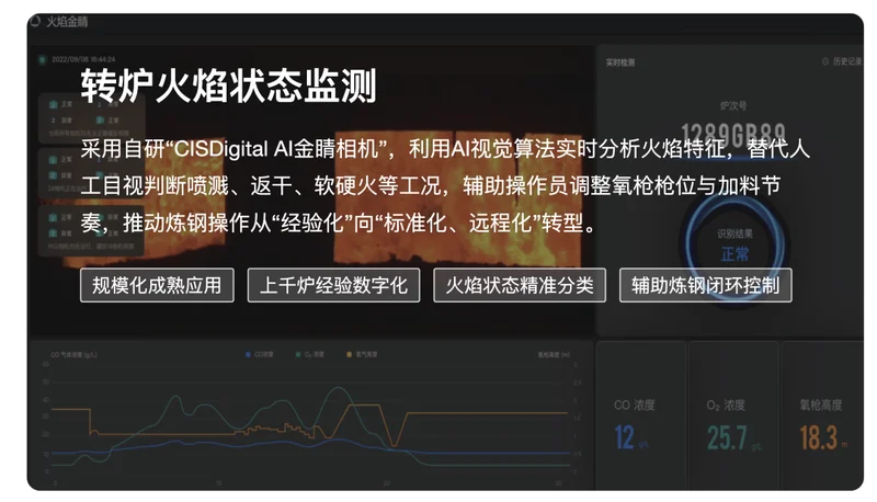 但随着AI的到来,这种问题得到了很好的解决——AI可以替代人眼对转炉火焰进行更准确的观察与判断,使得炼钢速度更快、产品品质更高。