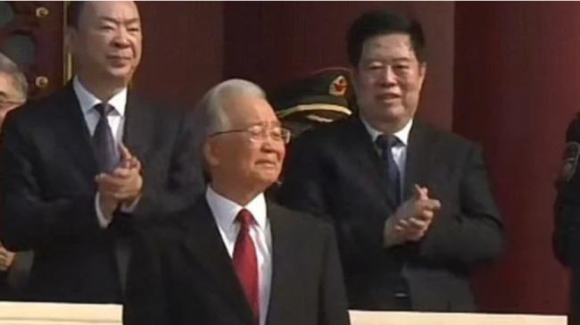 2025年9月3日,中共前总理温家宝在天安门城楼观看阅兵。(图片来源:公用领域 网络图片、视频截图)