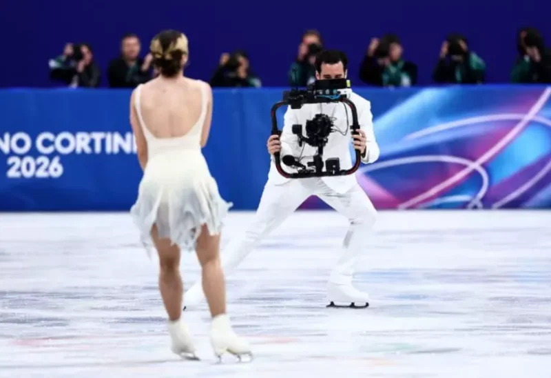 身穿一身白色西装和配套冰鞋的摄影师科万(Jordan Cowan),在今年米兰冬奥会的花式滑冰比赛中意外走红。