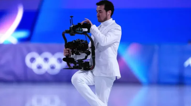 这位35岁的摄影师拍摄选手们离开冰面的影片迅速走红网络,这不仅是因为他的著装,更因为他优雅地操控着摄影机,同时在冰面上滑行——有时单腿滑行,有时甚至倒滑。