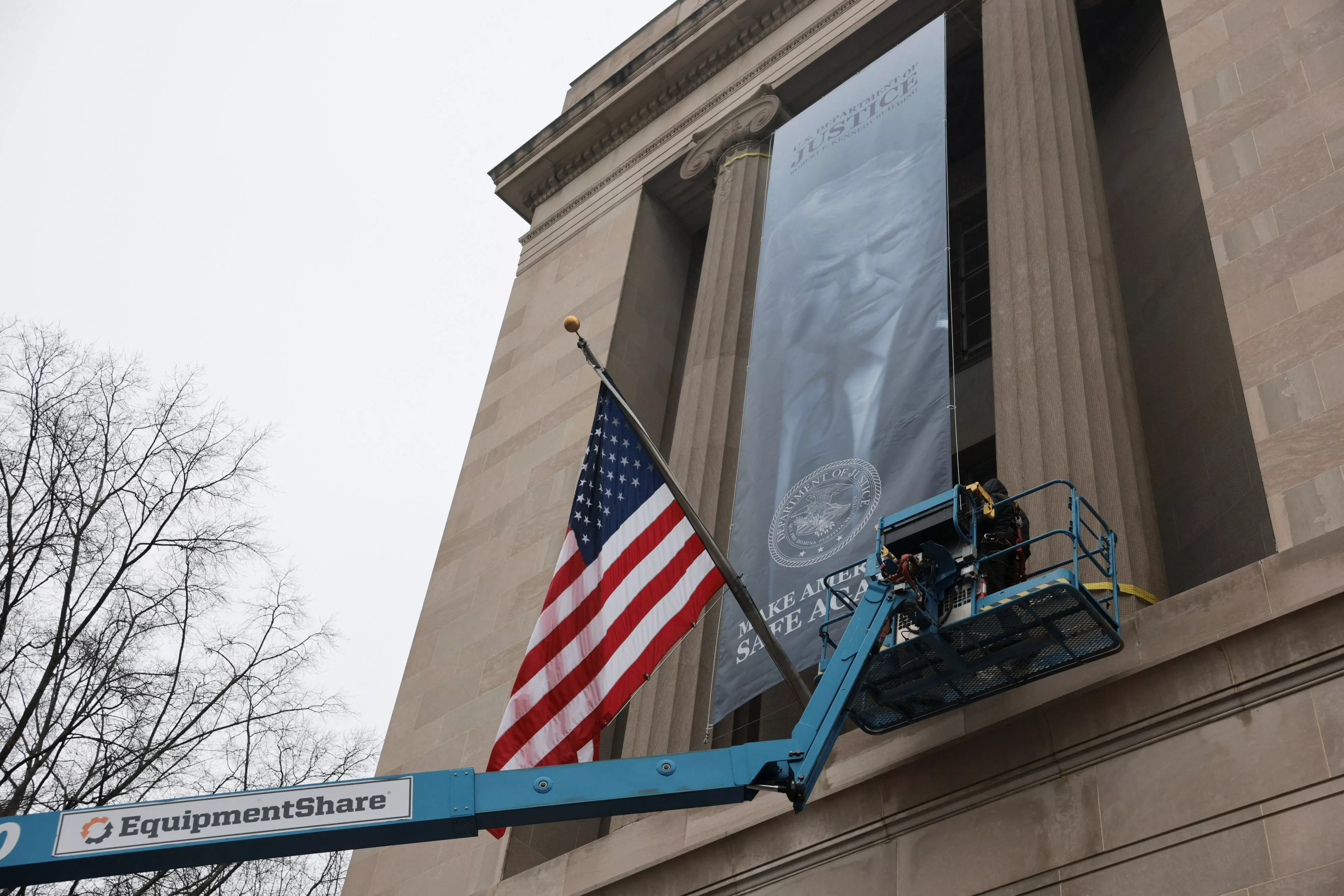 司法部总部外悬挂川普巨幅肖像 引发独立性质疑