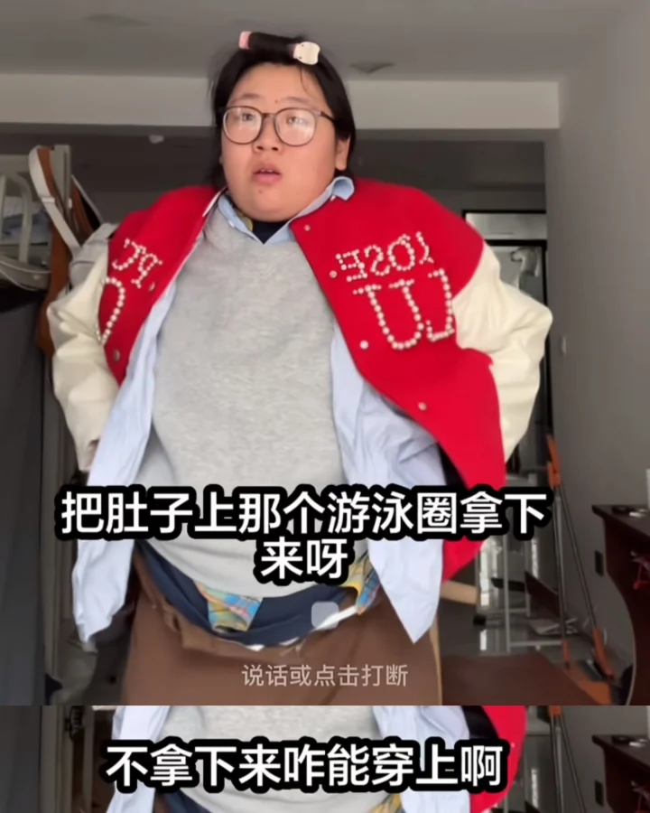 “肚子上的游泳圈拿下来啊,不拿下来怎么穿啊……”