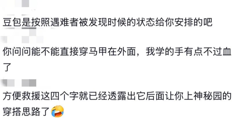 网友锐评:“穿这套,直接被保送神秘园了。AI可能是按照遇难者被发现的状态,给你安排的穿搭。”