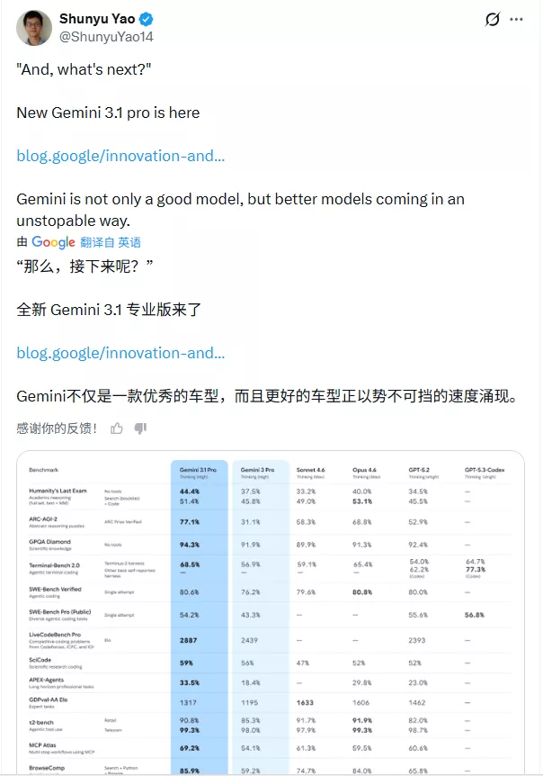 谷歌要重夺王座:Gemini 3.1 Pro发布