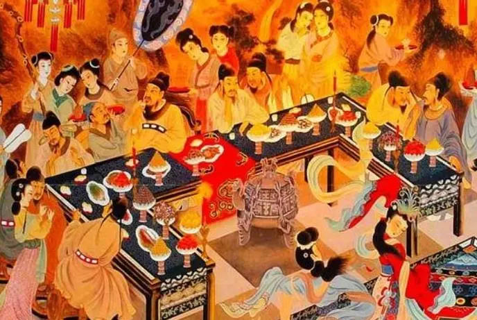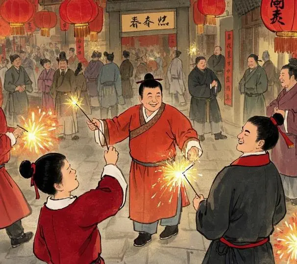 《岁华纪丽》曾说:“俗说屠苏乃草庵之名。昔有人居草庵之中, 每岁除夜遗闾里一药贴, 令囊浸井中, 至元日取水, 置于酒樽, 阖家饮之, 不病瘟疫。今人得其方而不知其人姓名, 但曰屠苏而已。”韩鄂还在他的另一部著作《四时纂要》中披露了这一预防瘟疫的屠苏酒方:大黄、花椒、桔梗、桂心、防风各半两, 白术、虎杖各一两, 乌头半分。他说将以上八味切细, 装入深红色的口袋里, 年三十的傍晚, 把它放在井中。初一早上, 拿出来连口袋浸在酒里。全家从小到大, 依次稍许各喝一些, 一年没有病。从记述和配方来看, 虽然有神秘的色彩, 但是这些药材对身体都是有利无害的。元日喝屠苏酒的作用主要是祛病强身, 使之长寿。