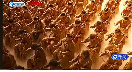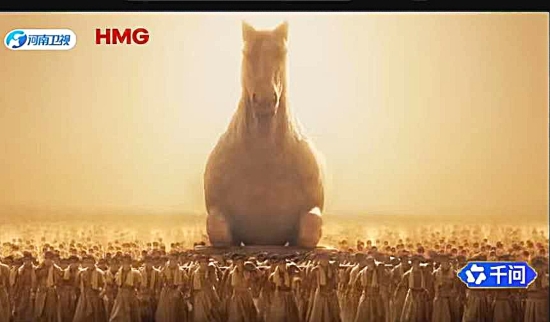辽宁卫视胆大包天地将一匹骏马牵上来,可是它不敢“奔腾”啊!北京春晚还有安徽春晚只能象征性地用高科技糊弄咱。只有新疆,人家有汗血马的训练基地啊,独一份,那马王子站在那里就威震四方。但还是太安静。相比之下,还是河南春晚的开场最有气势,黄尘滚滚中马头琴声的激昂,呼麦原始的低吼,舞者的狂放劲爆,充分展示了什么是“万马奔腾”。