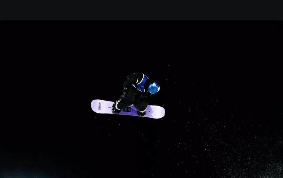 苏翊鸣醒目的紫色BURTON雪板 图源:adidas官方