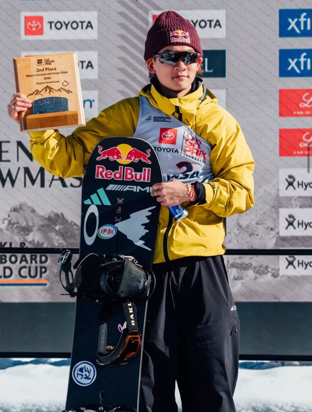 2025-2026赛季单板滑雪坡障世界杯美国阿斯本站苏翊鸣获得银牌并展示个人滑雪板 图源:运动员社媒