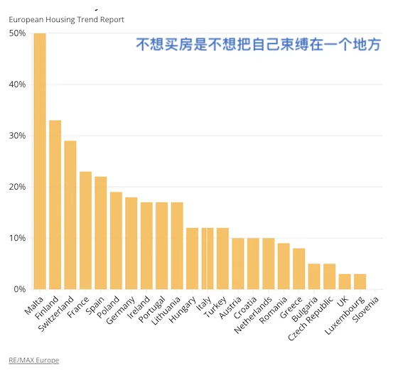 16%的人选择租房是为了搬家自由,马耳他这一比例最高,达到50%。这主要源于马耳他外籍居民多。然后是芬兰,33%;