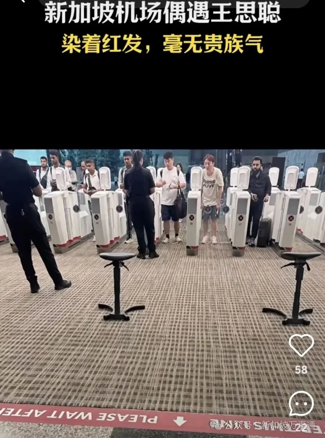 由于机场安检机器摄像头位置较低,王思聪不得不反复尝试扫脸识别,最后只能半蹲着、弓着背完成流程。