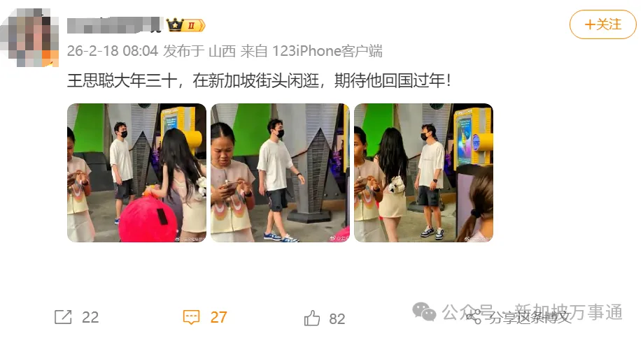 王思聪春节前就在新加坡