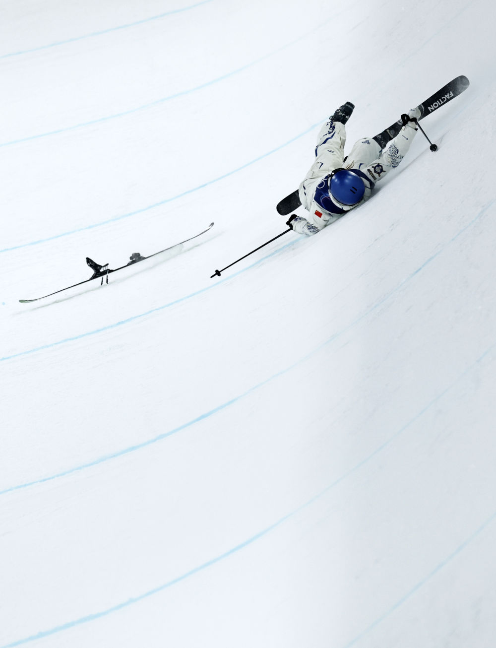第二滑,谷爱凌基本顺利完成整套动作,得到86.50分,以第五名晋级决赛。