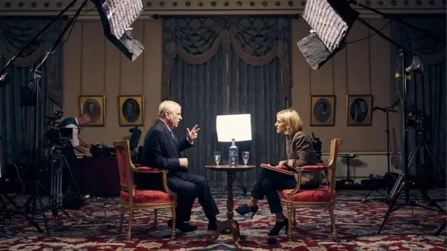 安德鲁在2019年BBC《新闻之夜》节目中告诉艾蜜莉・梅特利斯(Emily Maitlis),他完全不记得曾与吉夫雷见过面。图像来源,Mark Harrison / BBC