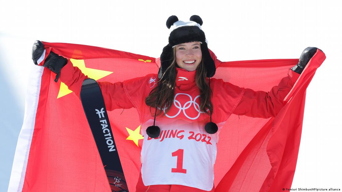 在获得意大利冬奥会第一枚银牌之后,谷爱凌公开表达了自己所承受的压力。她说:“有时感觉自己肩负着两个国家的重担。” 图为谷爱凌2022年参加北京冬奥会。图像来源: Yomiuri Shimbun/AP/picture alliance
