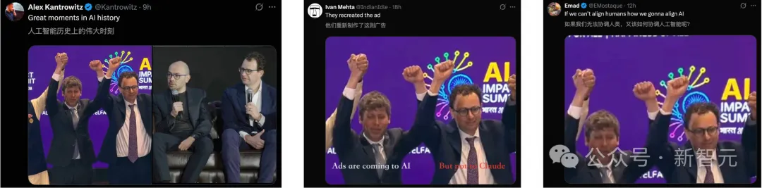 在新德里AI峰会上,合影环节,奥特曼和Dario Amodei并肩站着,却连手都不愿意牵一下.......