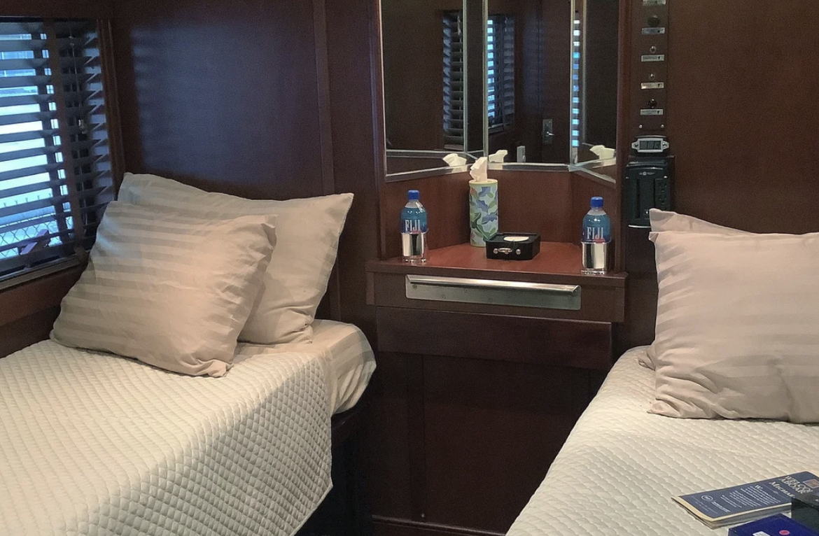 这些车厢为上世纪50年代经典车型,经全面翻新后内饰焕然一新。车厢设有玻璃穹顶可仰望星空、真皮座椅、多媒体娱乐室;五间卧室中包含带独立淋浴的主卧套房,甚至配备开放平台便于下车呼吸海风,既保留复古质感又提供现代化服务。
