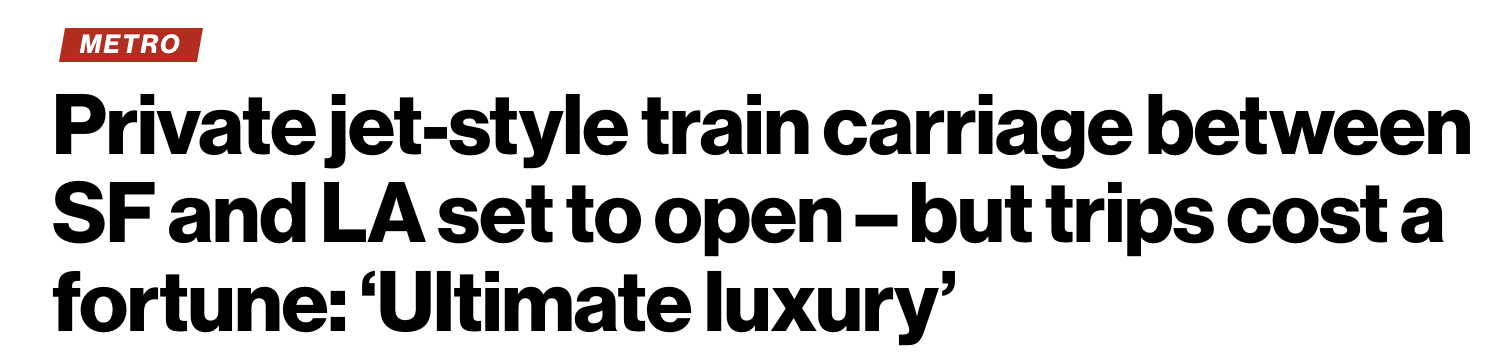 旧金山至洛杉矶,“空中头等舱”驶上铁轨叶子