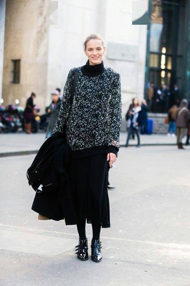 冬天穿黑色,不必想着露肤。