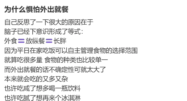 在以聚餐为核心的社交场景中,正食症患者首先感受到的并不是愉悦,而是焦虑:“有没有不加酱的沙拉?”“食材能不能自带”“能不能不吃火锅?”原本用来拉近关系的饭局,逐渐变成需要想方设法回避的压力源。