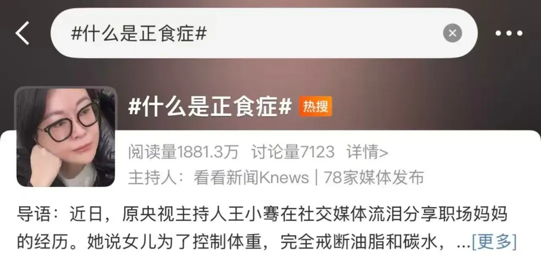 微博话题#什么是正食症#,阅读量超1880万