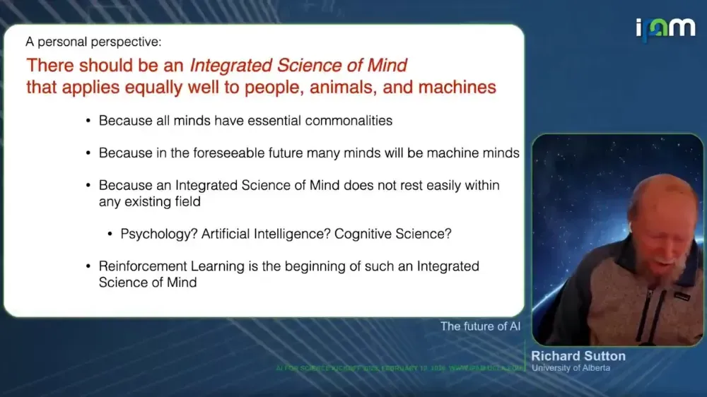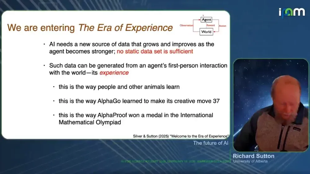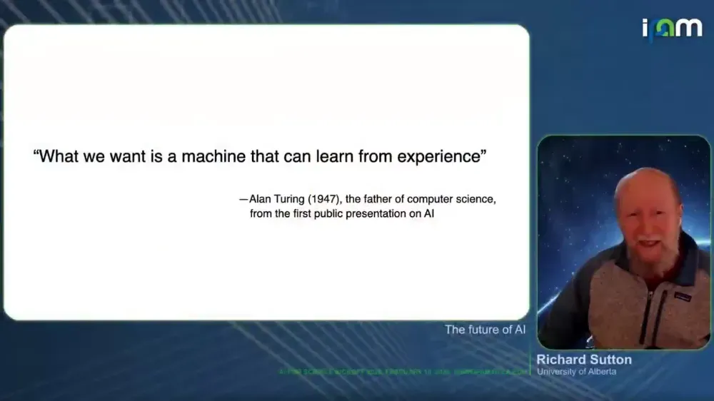 近日,图灵奖得主理查德·萨顿(Richard Sutton)以远程连线的方式,在洛杉矶加州大学(UCLA)的纯粹与应用数学研究所(IPAM,Institute for Pure and Applied Mathematics),发表了这篇名为《AI 的未来》(The Future of AI)的最新演讲。