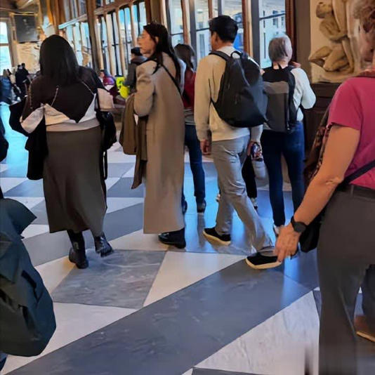 眼尖的网友在佛罗伦萨乌菲兹美术馆排队时,直接撞见了霍启山和娜然。