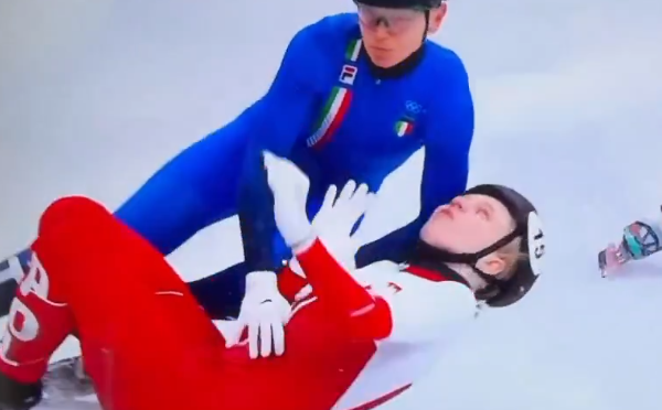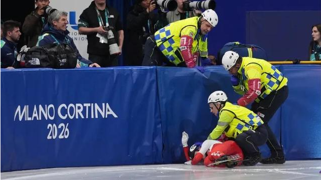 米兰冬奥会女子1500米短道速滑四分之一决赛第六组比赛,波兰选手卡米拉-塞利尔在比赛后期失足滑倒,与美国选手克里斯滕-桑托斯-格里斯沃尔德发生碰撞,导致后者冰刀划伤其面部(脸颊和眼睑),伤口需缝针。