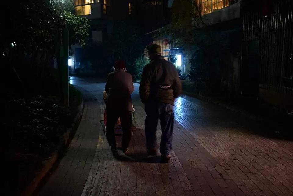 成都,一对老人几乎天天晚上推着小车,走上一圈捡垃圾,儿女们经历了从反对到释然的过程。图源:视觉中国