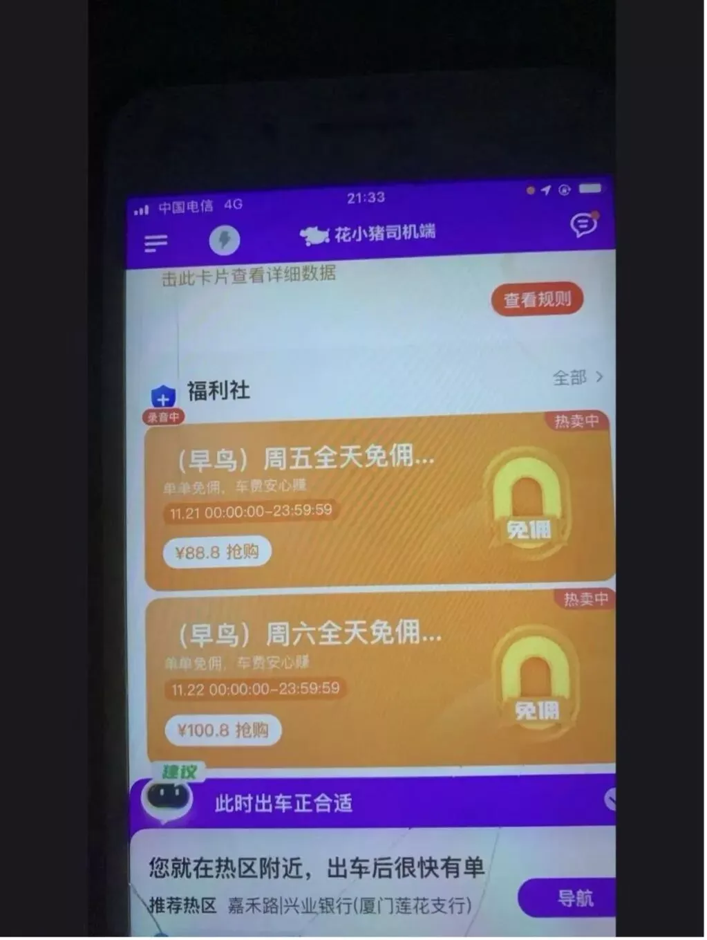 也有司机在社交平台上抱怨,如果不买免佣卡,就接不到单,但也有买了的司机觉得,老是只能接到用了优惠券的特价单,进退两难。和滴滴相比,中小平台推出了更多种类的免佣卡,包括日卡、早晚高峰时段卡、国庆假期9天免佣卡。价格也很参差,低的两三块钱,贵的要到七八十。