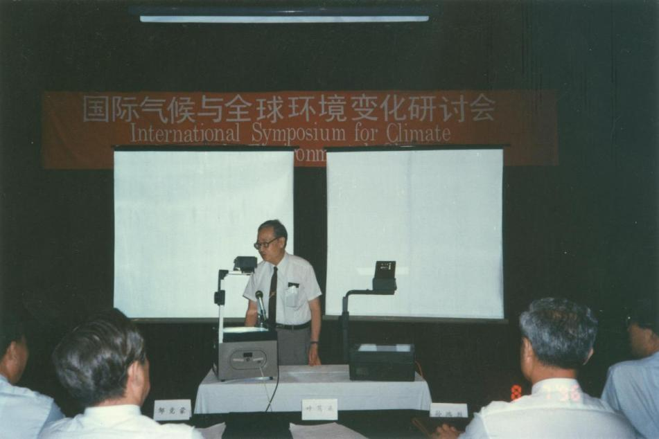 ▲1996年,叶笃正院士在国际气候与全球环境变化研讨会上做学术报告(图片来源:中国科学院院士文库)